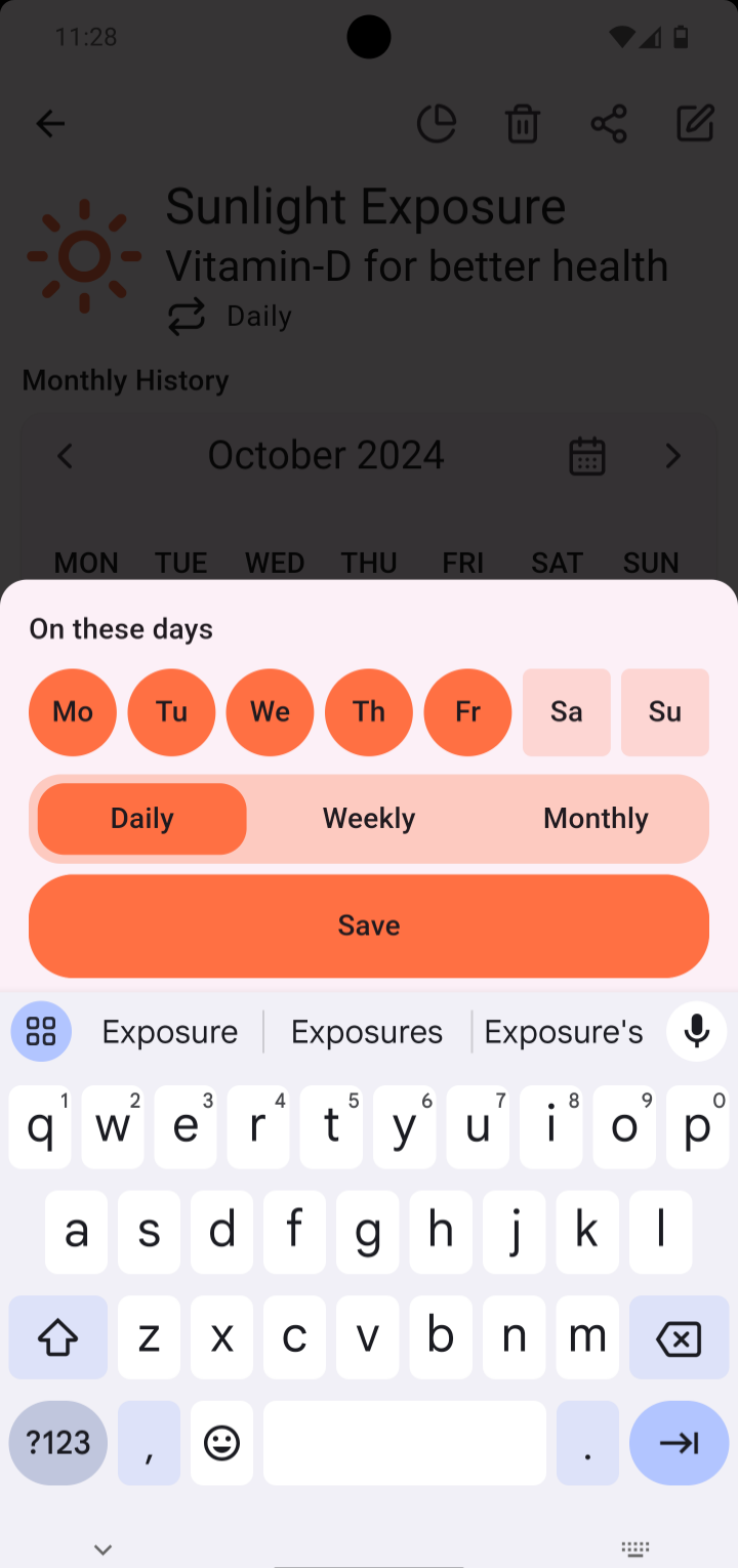 Stay on top of your motivation with current and best streaks. You can adjust streak goal as you fit in Daily, Every Saturday, Sunday, x day per week, x day per month etc.