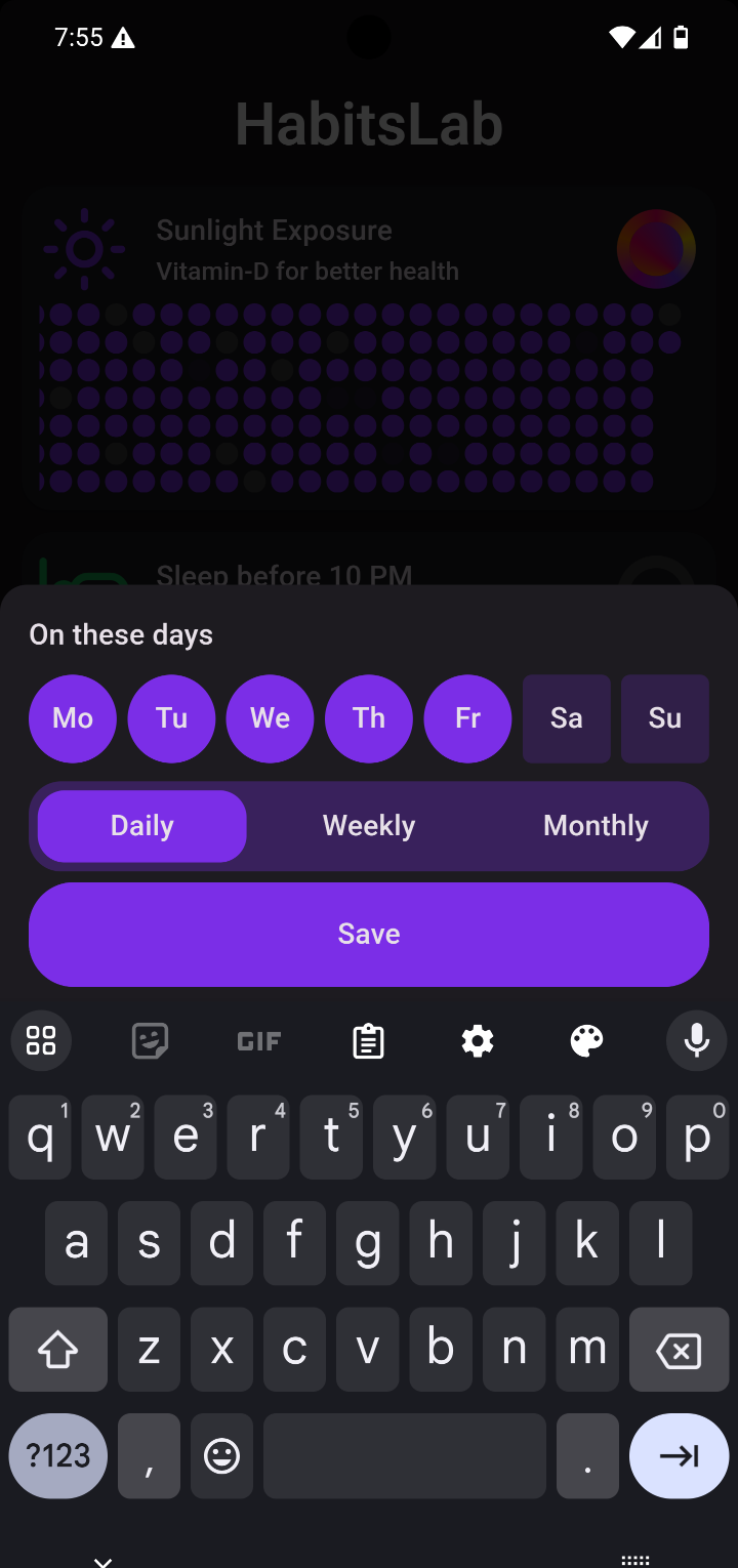 Take control of your life with HabitsLab. It’s easy to use, beautiful and interactive to experiment with your Habit.